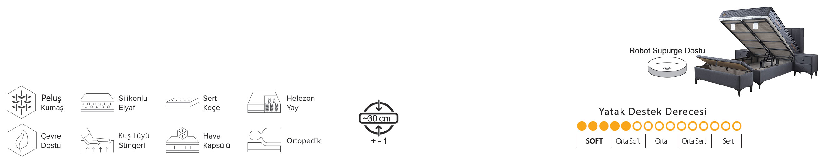 Formunu ve özelliklerini koruyan Peluş , uzun yıllar rahat ve kaliteli bir uyku ortamına sahip olmanızı sağlar. Hafif, doğal yapısının yanı sıra yumuşacık oluşuyla da sanki bulutların üstünde uyuyormuşsunuz gibi hissetmenizi sağlar.
