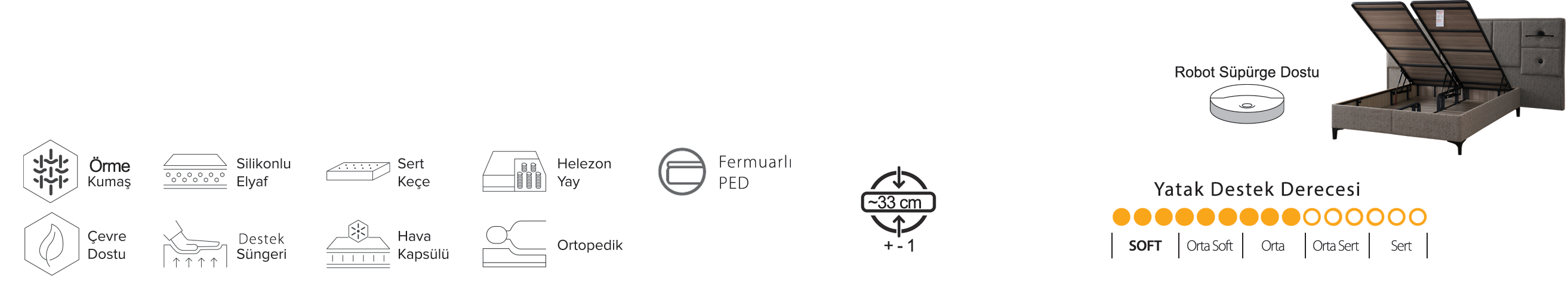 Yatağınızın üst yüzeyinde kullanılan pamuklu örme kumaşın hava geçirgenlik özelliğinin terlemeyi önlemesiyle, ferah bir uyku deneyimi yaşamanızı sağlar