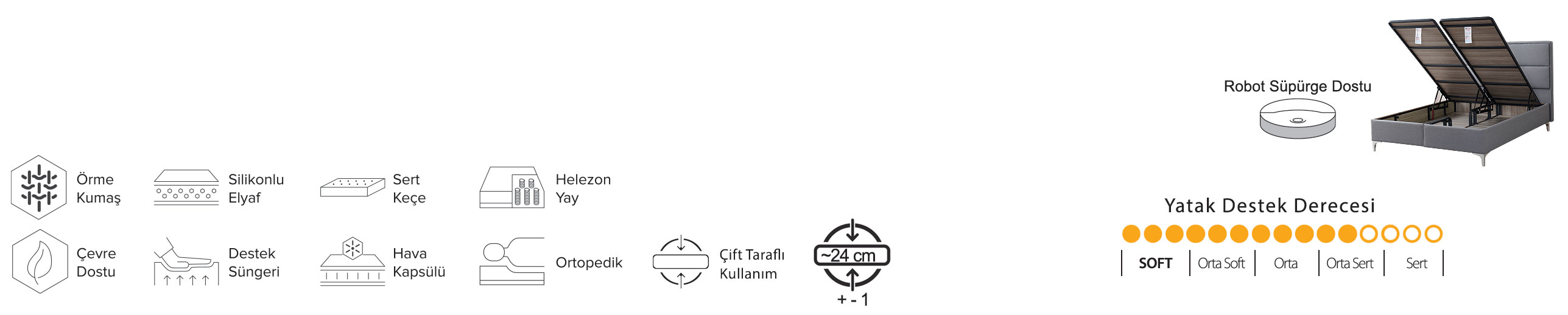 Yatağınızın üst yüzeyinde kullanılan pamuklu örme kumaşın hava geçirgenlik özelliğinin terlemeyi önlemesiyle, ferah bir uyku deneyimi yaşamanızı sağlar.