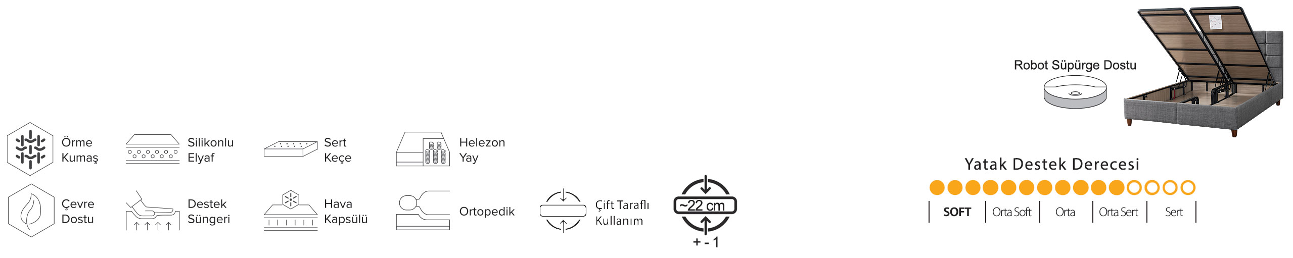 Yatağınızın üst yüzeyinde kullanılan pamuklu örme kumaşın hava geçirgenlik özelliğinin terlemeyi önlemesiyle, ferah bir uyku deneyimi yaşamanızı sağlar.