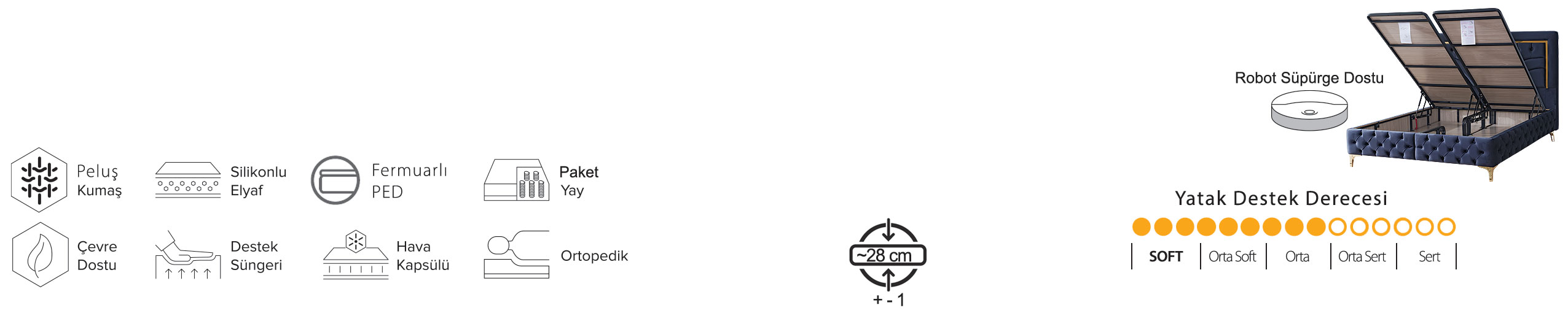 Formunu ve özelliklerini koruyan Peluş , uzun yıllar rahat ve kaliteli bir uyku ortamına sahip olmanızı sağlar. Hafif, doğal yapısının yanı sıra yumuşacık oluşuyla da sanki bulutların üstünde uyuyormuşsunuz gibi hissetmenizi sağlar.
