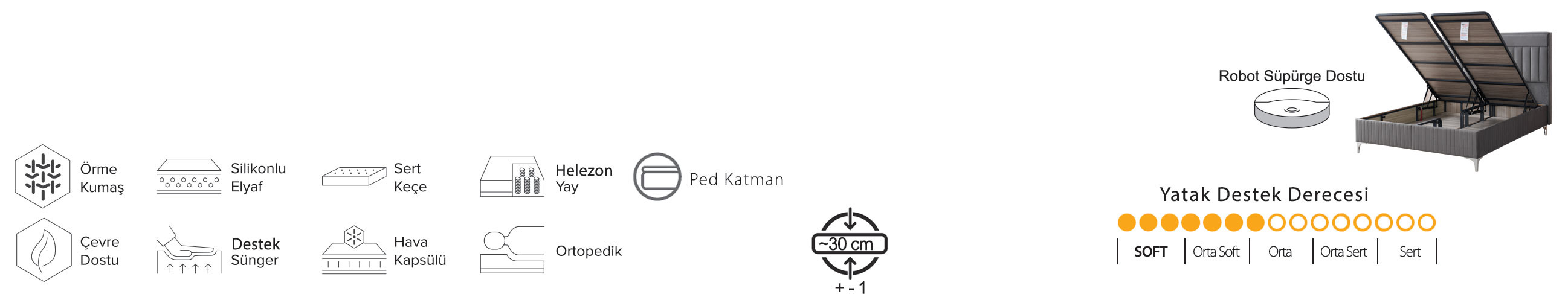 Rahat ve temiz bir yatakta uyumak günün yorgunluğunu ve stresini atmamıza yardımcı olur.Yüksek teknoloji kullanılarak elde edilen orta sert sünger, size ve sevdiklerinize hem temiz hem de çok rahat bir uyku deneyimi sunuyor.
