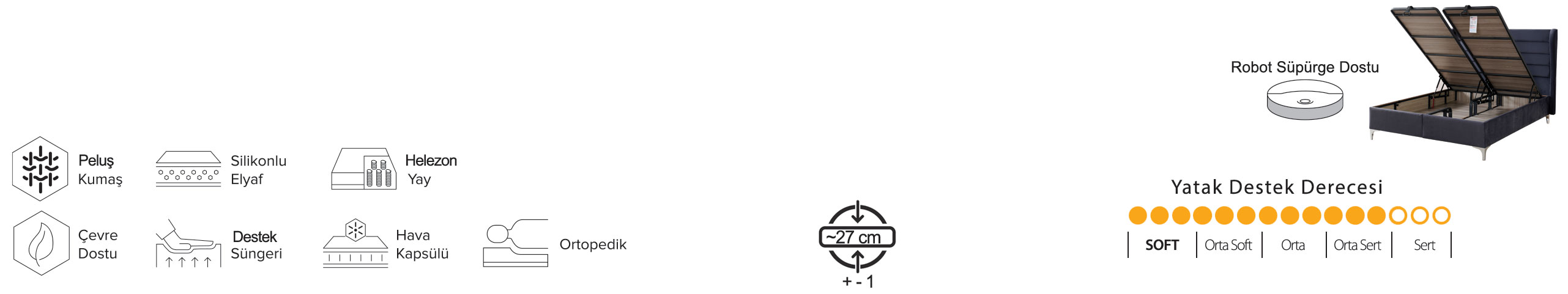 Yatağınızın üst yüzeyinde kullanılan pamuklu örme kumaşın hava geçirgenlik özelliğinin terlemeyi önlemesiyle, ferah bir uyku deneyimi yaşamanızı sağlar