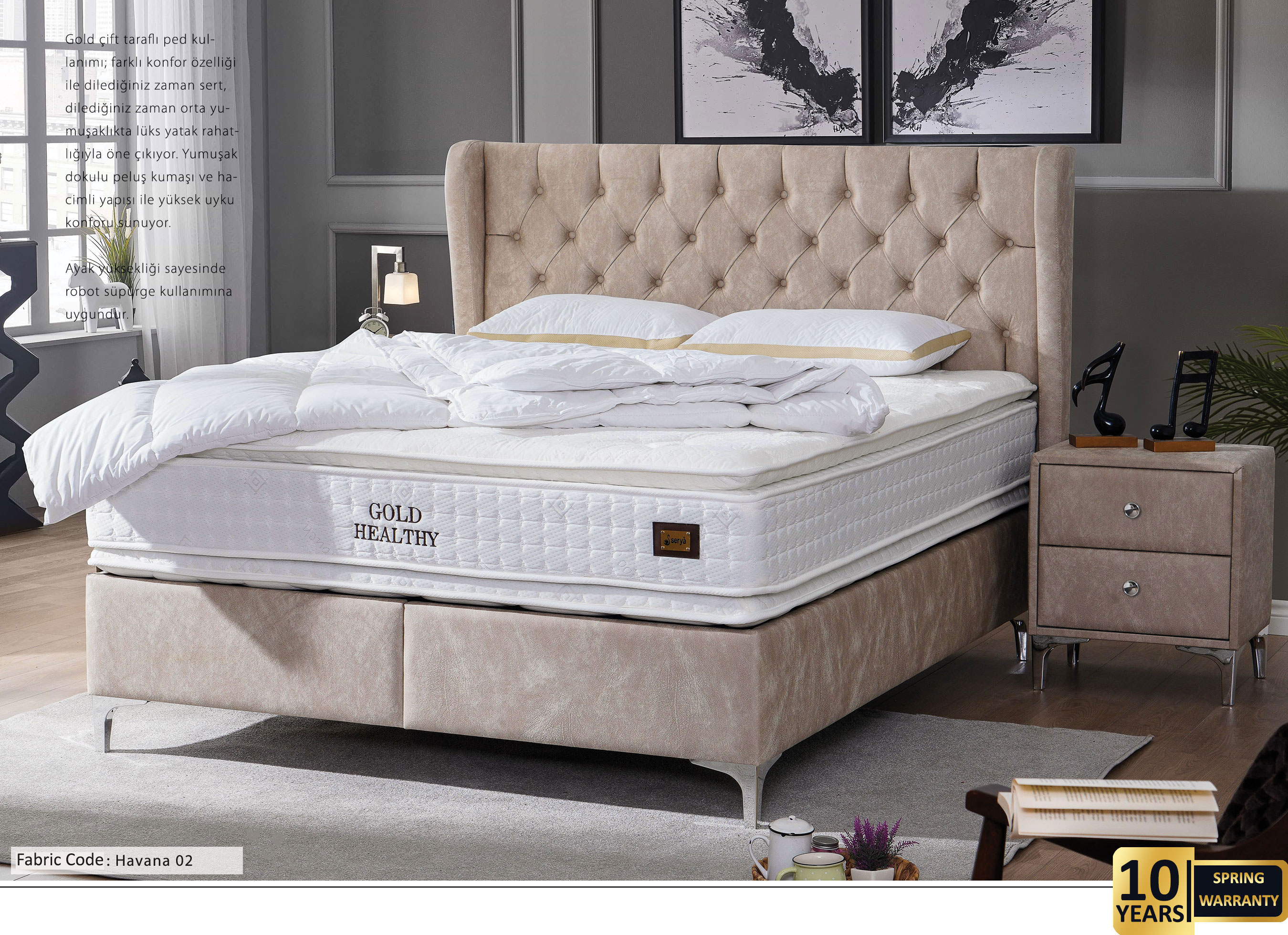 Plush, which maintains its form and features, ensures a comfortable and high-quality sleep environment for many years. Its light, natural texture and softness make you feel as if you're sleeping on a cloud.